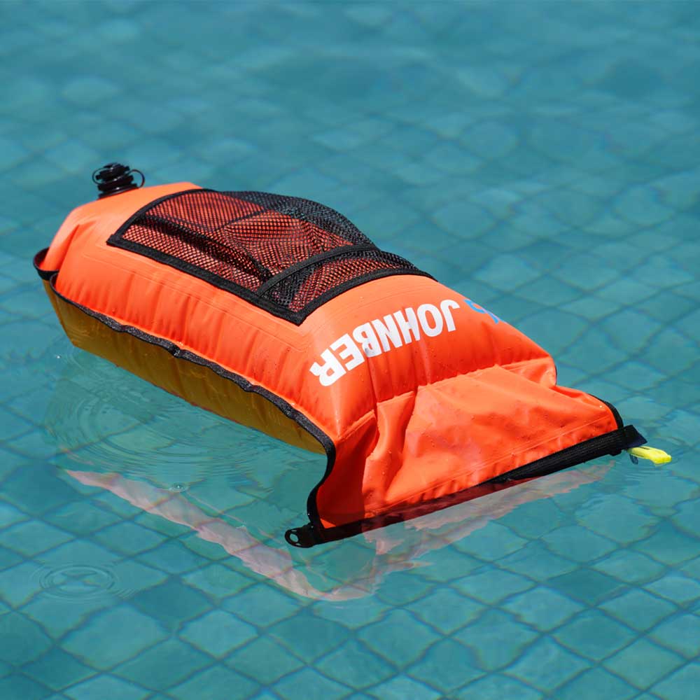 안전부이는 오픈워터 수영 시 웻슈트와 함께 꼭 필요한 장비 중 하나입니다.
