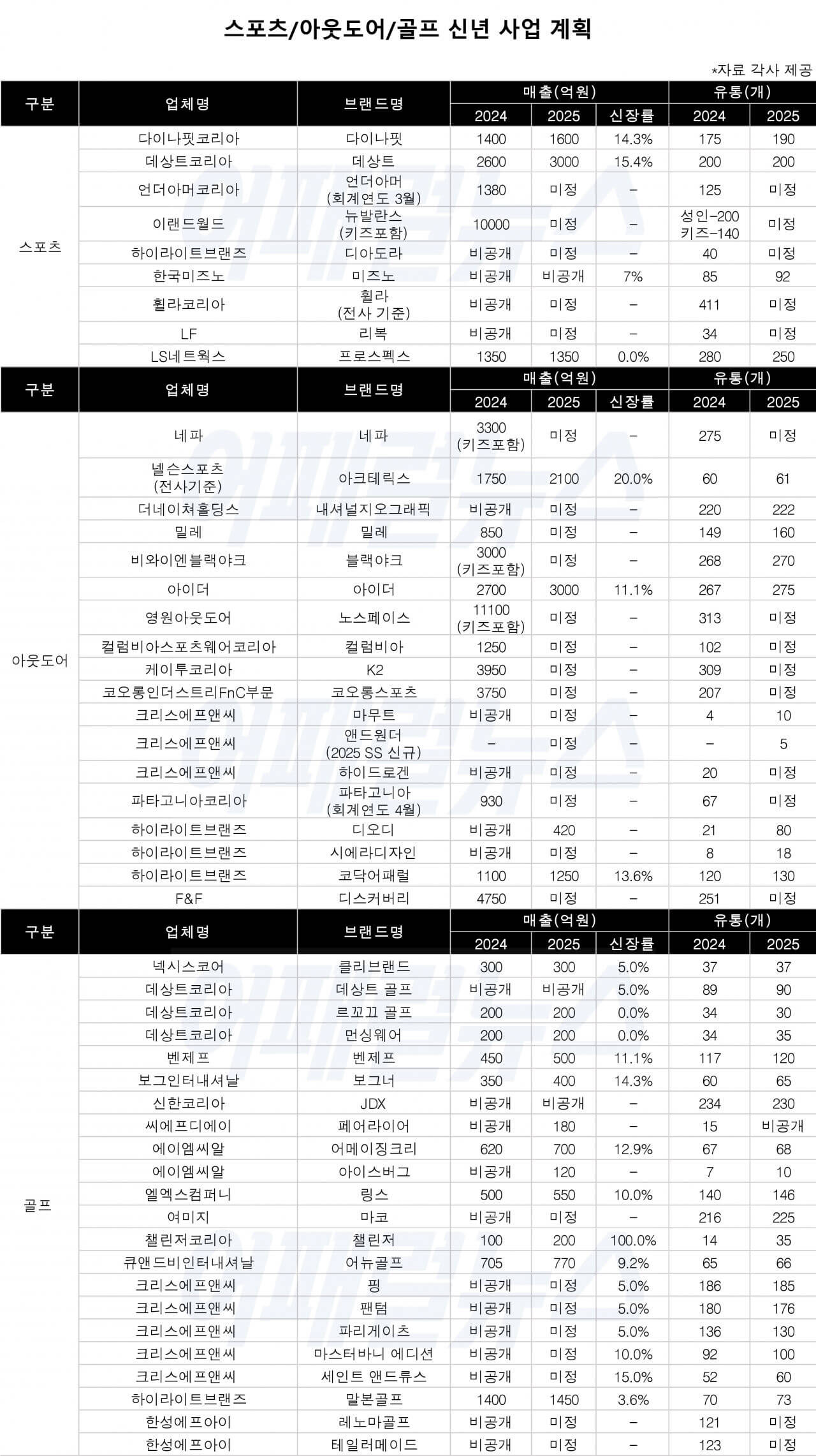 business 24년 스포츠 아웃도어 브랜드 매출 By 에스제이브라더 - 2025-04-23 0 242 FacebookXPinterestWhatsApp 25년 스포츠 아웃도어 브랜드 매출 및 전년 대비 신장률 자료