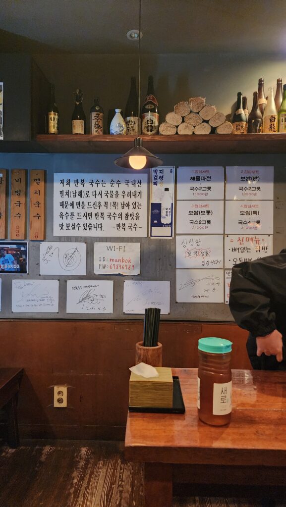 food/book 상암동 맛집, 만복 국수집 – 연예인들 많이 찾는 집 By 에스제이브라더 - 2024-11-26 0 660 FacebookXPinterestWhatsApp 밖에서보면 평범한 국수집 같지만 알고보면 맛집에 많은 연예인들도 왔다가는 상암동 맛집이다. 음식들도 정갈하고 맛있다. 가격도 합리적이어서 더 좋다. 점심 시간 때에는 긴 줄에 기다려야만 된다. 상암동에 맛집 또는 저녁 술집 찾는다면 추천한다. 실내에는 다양한 사인들이 많이 있다. 멸치국수는 배터질만큼 양으로 내어준다. 보쌈도 정갈하고 맛있다. 점심 세트 메뉴는 알차다. 이런 맛집들이 오래오래 잘 되어서 없어지지 않았으면 좋겠다.
