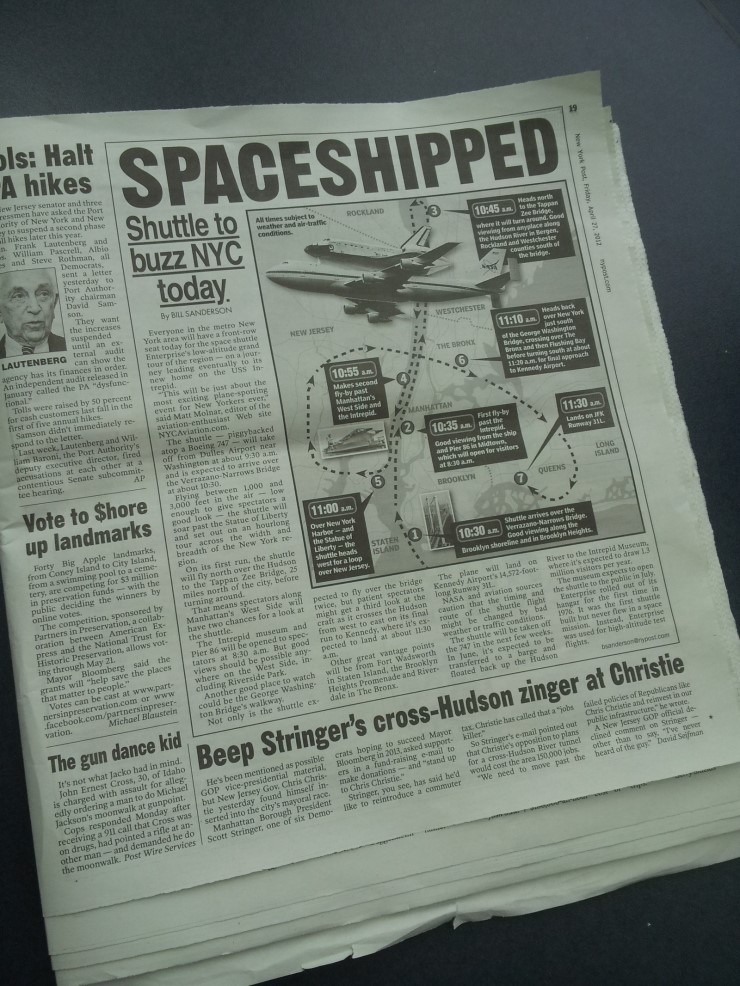 무슨 일인가하고 옆에가서 봤더니 퇴역한 스페이스 셔틀이 내가 공항에 있던 그 시간때에 JFK에 착륙을 하는 시간대였던 것이고,