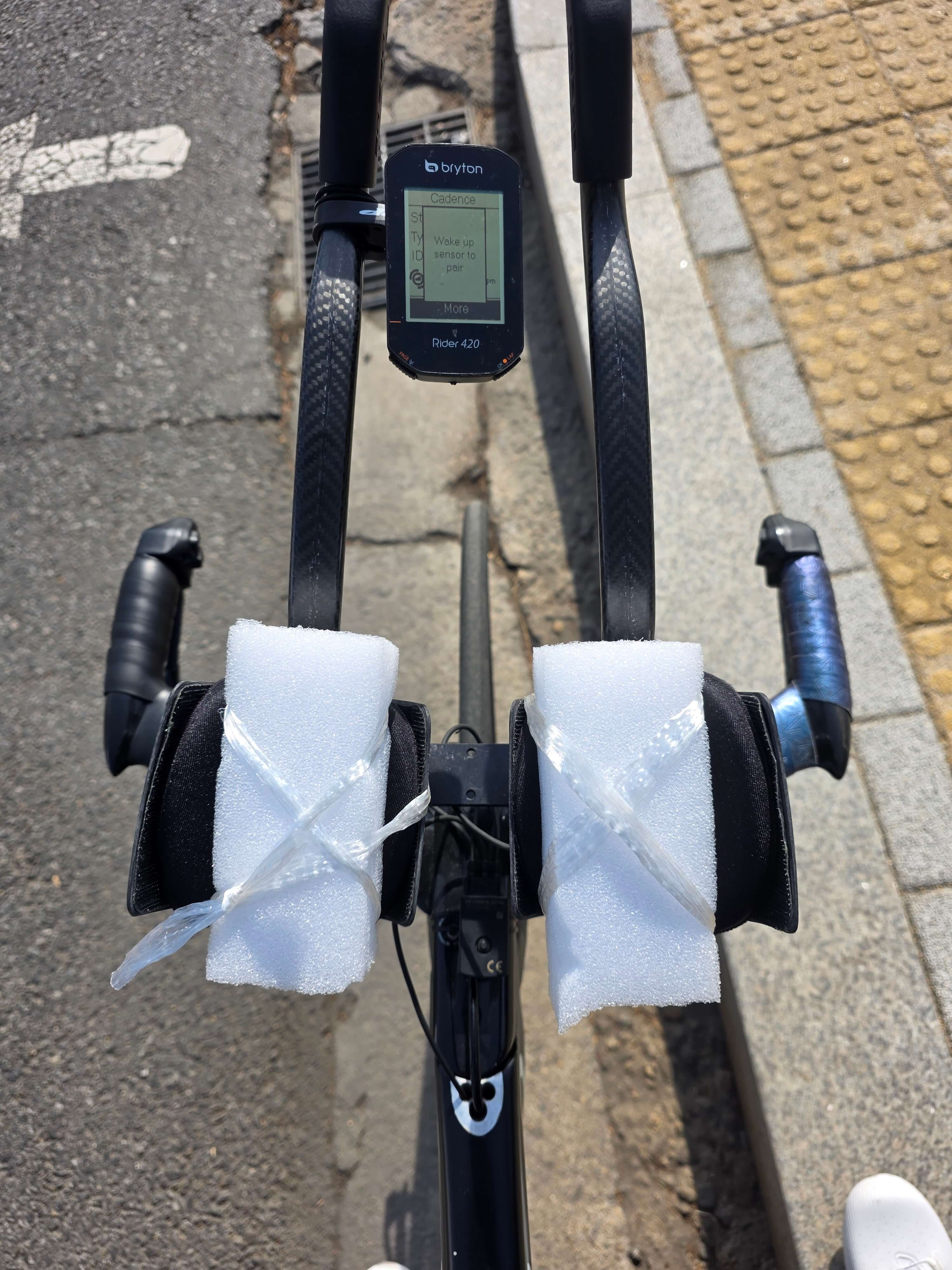 핸들 위치가 멀고 낮아서 지난 주 라이딩 때는 급하게 스펀지로 위치를 보정해 보았다. 느낌상 패드를 몸쪽으로 당겨야 된다. 하지만 정확한 진단을 받기위해 피팅을 받기로 한 것이다. 그리고 보정해줄 부품들도 구하는 것이 골치아프다.