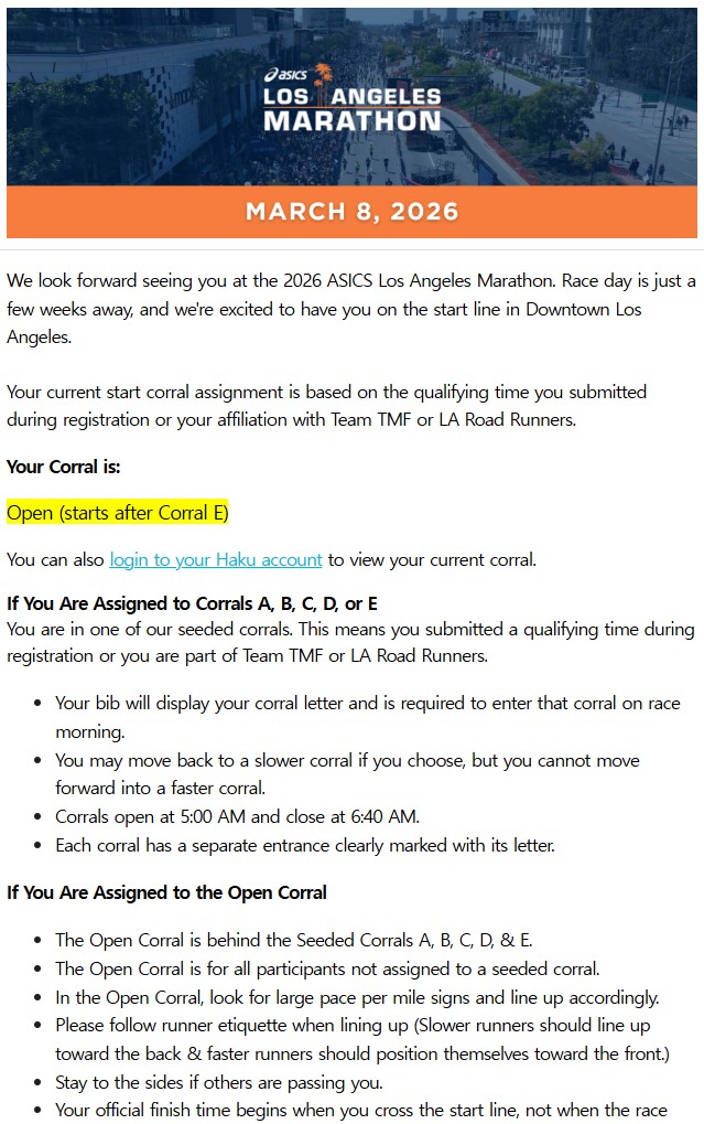 3월 8일 LA 다저스 스타디움에서 출발하는 LA 마라톤에 풀코스 신청을 했었다. 겨울 동안 월 200km를 뛰면서 준비 중이다. 목표는 4시간 안쪽으로 들어오는 것이었는데 생각보다 기록이 좋아지지는 않는다.